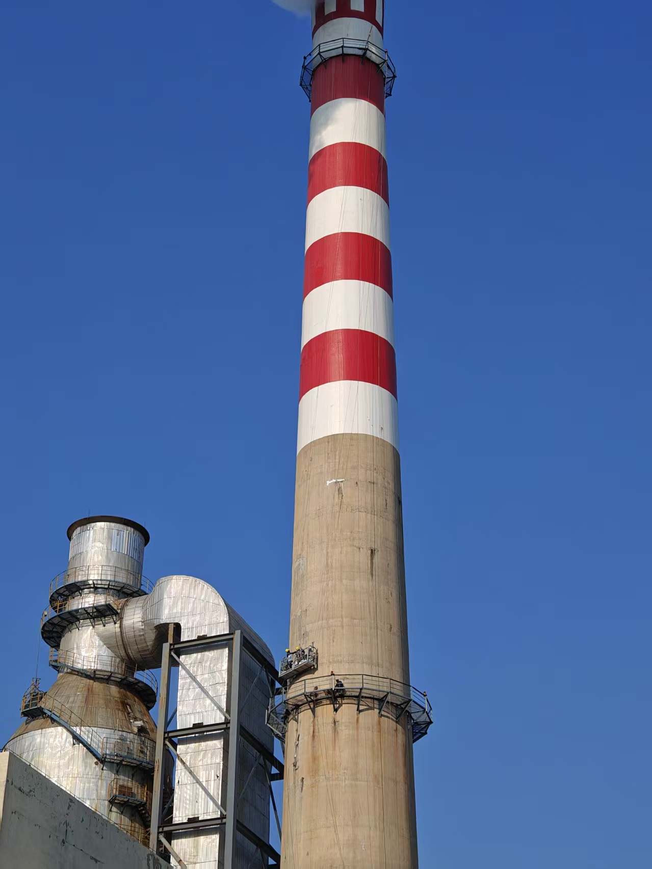 山東濱州150米煙囪維修防腐工程圓滿竣工